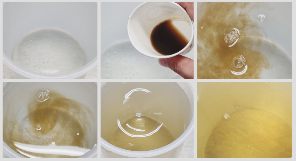 보이시나요? 5000 mL 에 5mL 이니 1/1000 정도 넣었는데도 저 정도의 블랙워터 효과를 보입니다.