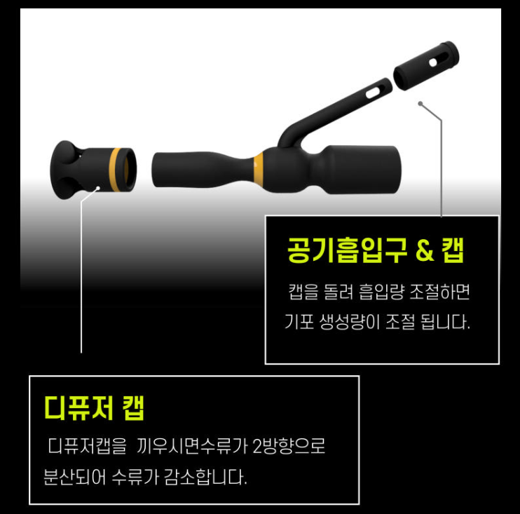 아래 그림처럼 출수구 쪽 파이프 끝에 꼽아주는 것으로 수류와 기포를 생성한다고 합니다.