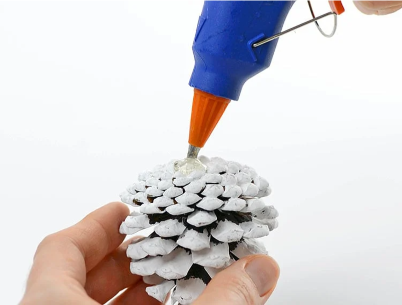 솔방울의 윗부분에 글루건으로 접착제를 듬뿍 발라줍니다.