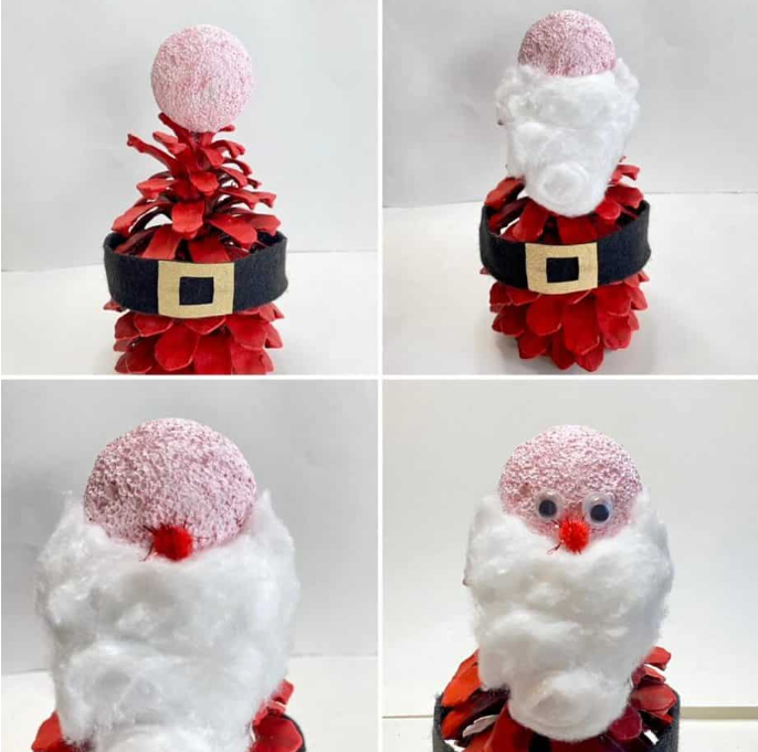 - 이렇게 하면 귀여운 솔방울 산타 인형이 완성됩니다!