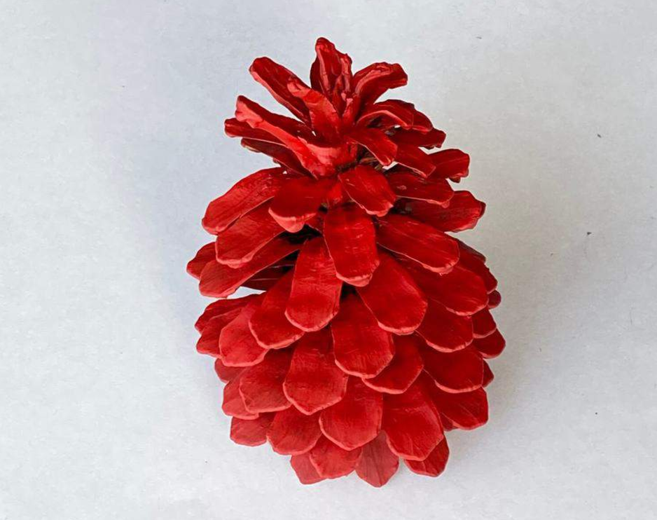 - 우선 몸이 될 부분인 솔방울을 빨간색 물감으로 칠해줍니다.