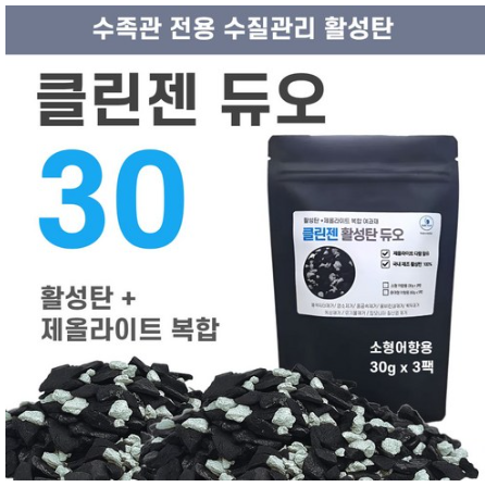 클린젠 듀오 (활성탄+제올라이트 복합): 가격도 적당하고 활성탄 뿐만 아니라 제올라이트와의 혼합 덕분에 수질 개선 효과가 높고 수질정화 효능이 좋아서 어항 운영에 훌륭한 선택이 될 거예요.