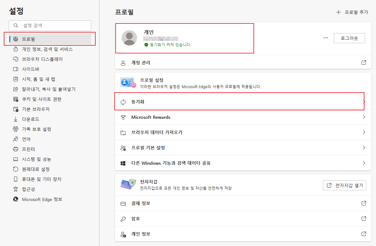 마이크로소프트 엣지에서 로그인 계정 프로필 확인해보기