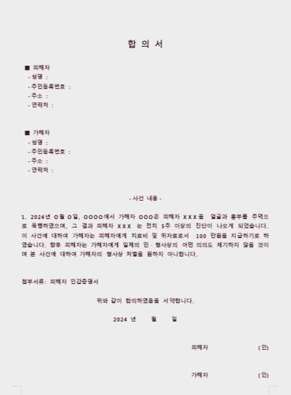 폭행 합의서를 작성할 때 주의할 점은 다음과 같습니다.