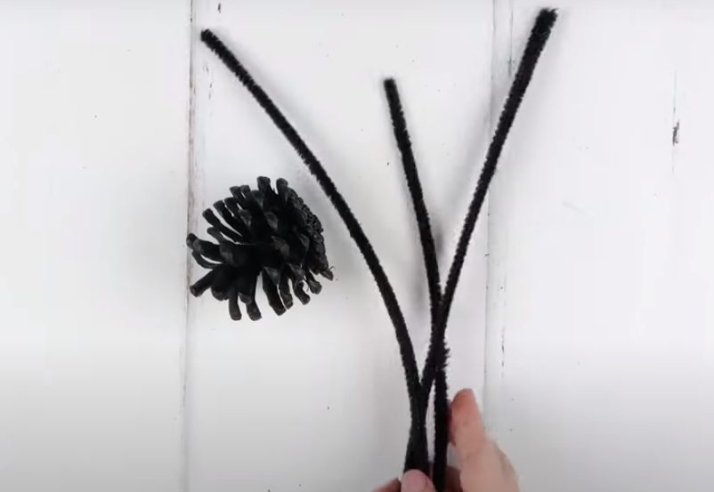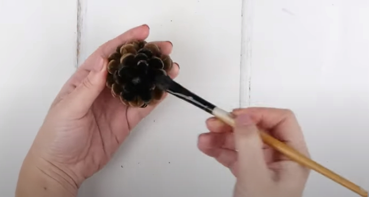 ① 먼저 솔방울을 검정색 아크릴 물감으로 칠합니다.