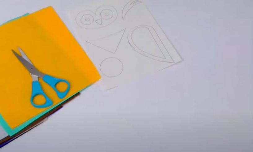 1. 도화지에 부엉이의 눈 날개 눈썹 등의 도안을 그려줍니다. 이 도안은 나중에 펠트지를 이용하여 가위로 오릴때 사용할 도안입니다. 펠트지에 직접 작업하셔도 무방해요